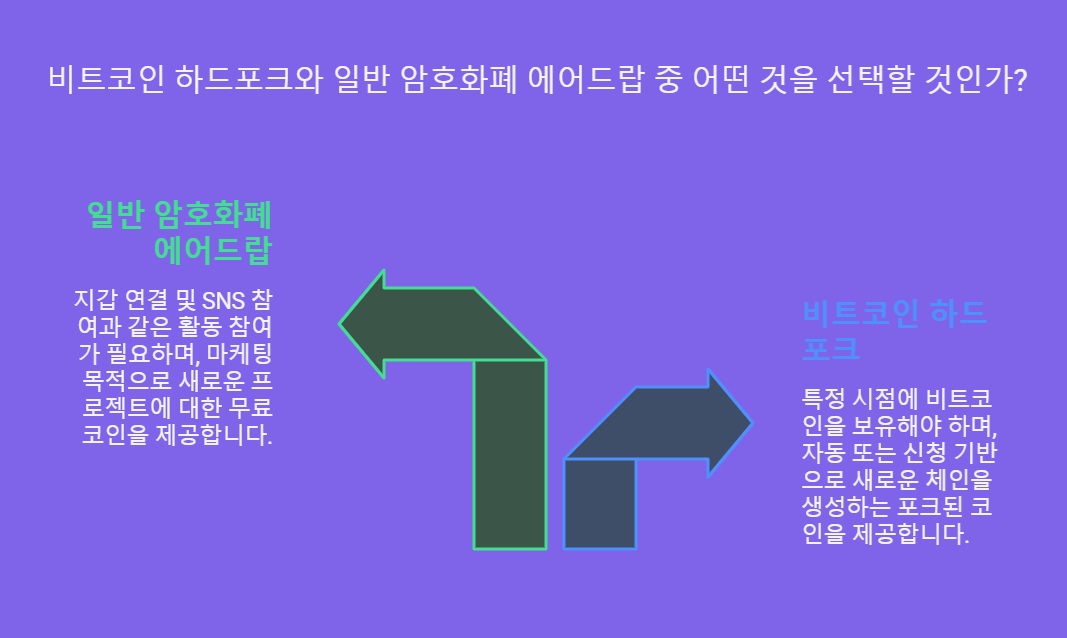 암호화폐 에어드랍과 포크 코인 지급은 비슷한 개념이지만 조금 달라요.